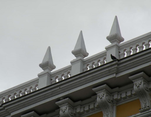 Linea Moldurada que similar a un dintel por su posicion horizontal, recorre el edificio a nivel de los entrepisos interiores y denuincia su ubicación exteriormente.