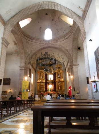 Parte de una iglesia donde se halla el altar mayor; suele estar a un nivel superior al resto de la planta y separado de la nave por una cancela o balaustrada. Su uso se reserva para el sacerdote