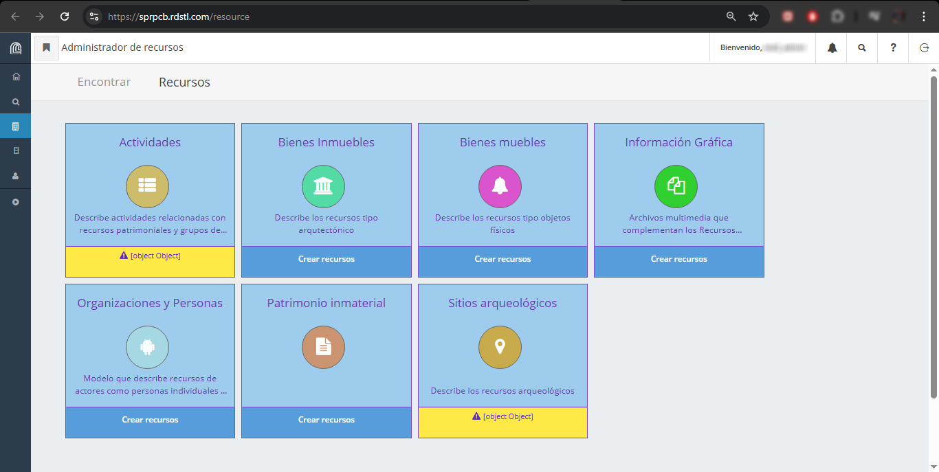 El administrador de recursos permite la creación y gestión de la información previamente estructurada por el diseñador de Arches